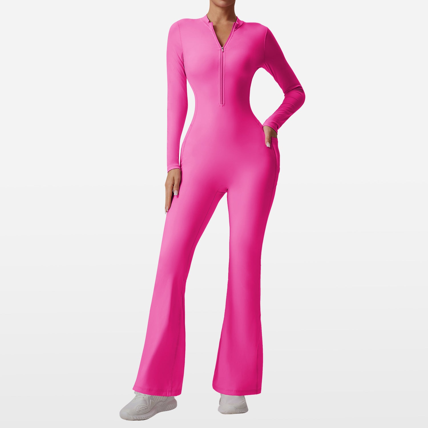 Experience seamless movement in this slim-fit yoga jumpsuit, engineered for practitioners who demand both style and functionality. The bare-feel fabric provides a second-skin sensation while allowing optimal breathability during intense practice. Long sleeves offer coverage and support, while the convenient front zipper enables effortless transitions between poses and quick temperature adjustments. Designed for those who refuse to compromise on comfort or performance.